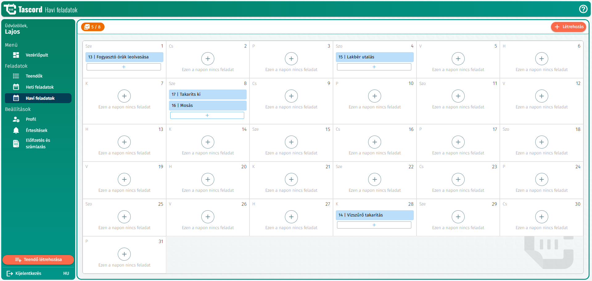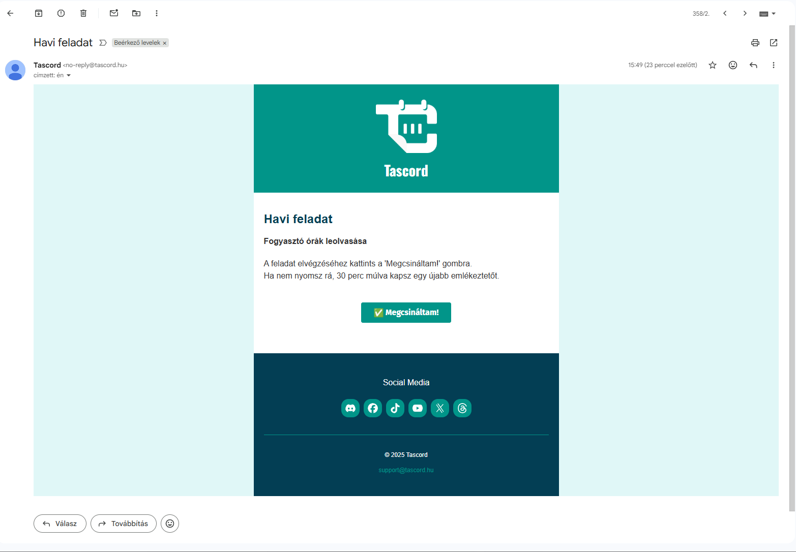 A kötelező havi teendőim gyakran elvesznek a hétköznapokban, a Tascord ebben segített, hogy időben észhez térjek. Mobilra is jöhetne, de így is tök jó.