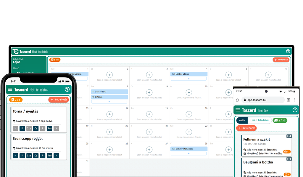 A Tascord segít rendben tartani a teendőidet és mindig kézben tartani a mindennapjaidat bárhol is vagy